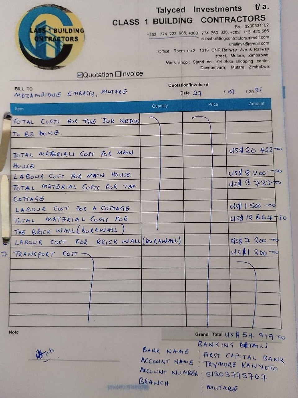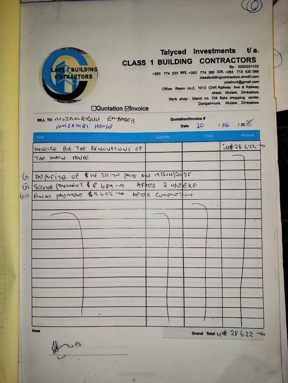 Mozambique Government embassy house renovations project